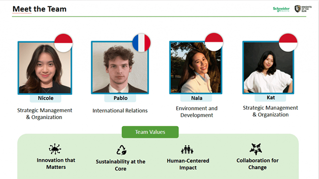 2025年10月16日にSchneider Electricが開催した世界的学生コンペティション “Schneider Go Green 2025” において、APU生のチームが世界第2位の快挙を成し遂げました。Schneider Electricは、エネルギー管理とオートメーションのグローバルリーダーとして知られる企業です。Schneider Go Greenはサステナビリティとエネルギーアクセスの課題解決を目的とした大会で、学生や若手起業家を対象に、「再生可能エネルギー」を活用した実用的ソリューションを募ります。今回の大会には11,000件以上の応募があり、APU生チーム「Knights of the Sun」は、日本勢として初めて第2位に輝きました。