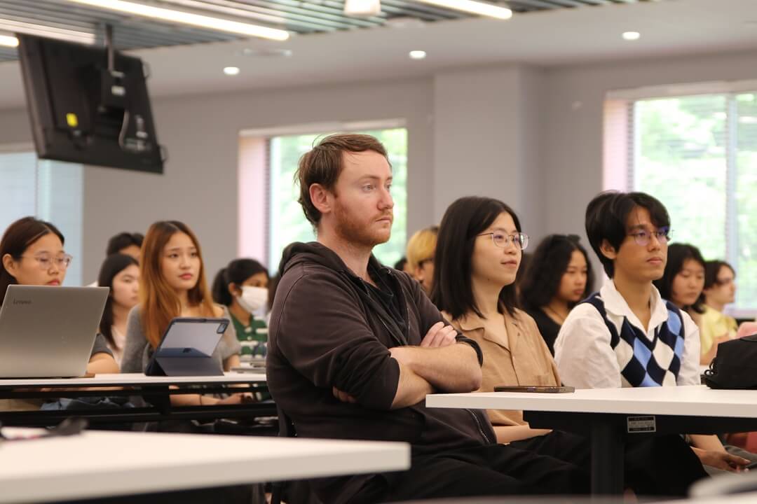 今回の講義には、卒業生の阿志慎太郎さん(アジア太平洋学部 2017年卒業、スリランカ)が登壇し、講義には日本語クラスを履修する多くの国際学生が参加しました。