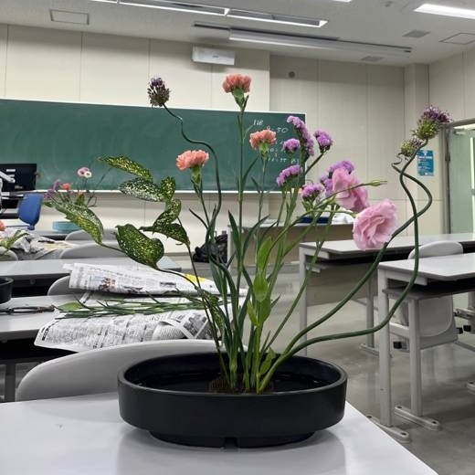 みなさんは道端に咲いている花を見て何を思うでしょうか。色とりどりの花を見るとどこか心をホッとさせてくれる存在ではないでしょうか。APUでは教養科目の一つとして、茶道や華道、能(科目名:日本の伝統芸能)の授業があり、日本の文化に触れることができ、学部限らず履修することが可能です。今回は2025年春セメスターに私が履修した華道の授業の紹介をします。