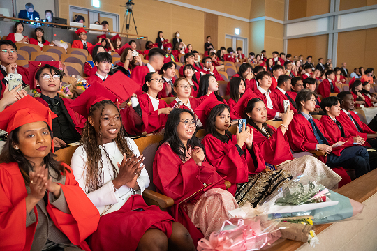 「2025年9月卒業の皆さん、皆さんは不確実性の中にではなく、可能性の中に向かって卒業します。世界は皆さんにあらゆる課題を解決することを求めているわけではありません。人類の最も偉大な協働プロジェクト、すなわち、より平和で公正、インクルーシブでサステナブルな未来を築くというプロジェクトに、皆さんならではの貢献をしてくれることを求めているのです。その仕事は今日から始まります。2025年9月卒業の皆さん、おめでとうございます!私たちは皆さんを心から誇りに思い、皆さんがこれから素晴らしい影響を各方面に与えていくのを、楽しみにして見守っています。」