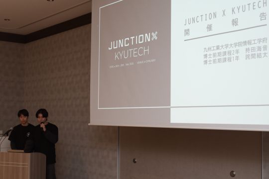 第1部では、九工大三谷学長およびAPU米山学長がそれぞれ大学の近況と今後の方向性について紹介しました。続いて、事務局よりSI事業の取り組みが説明され、SI事業を契機に活動を行った両大学の学生によるショートピッチでは、社会課題に挑む実践的な取り組みが発表されました。さらに、九工大水井副学長とAPU篠田副学長によるトークセッションでは、この1年を通した連携による学びの変化や、産学官に生まれたソーシャルインパクトについて活発な議論が行われ、学長や報道関係者、学生も交えたインタラクティブな意見交換の場となりました。第2部の懇親会では、参加者同士の交流が深まり、今後の連携強化に向けた有意義な機会となりました。